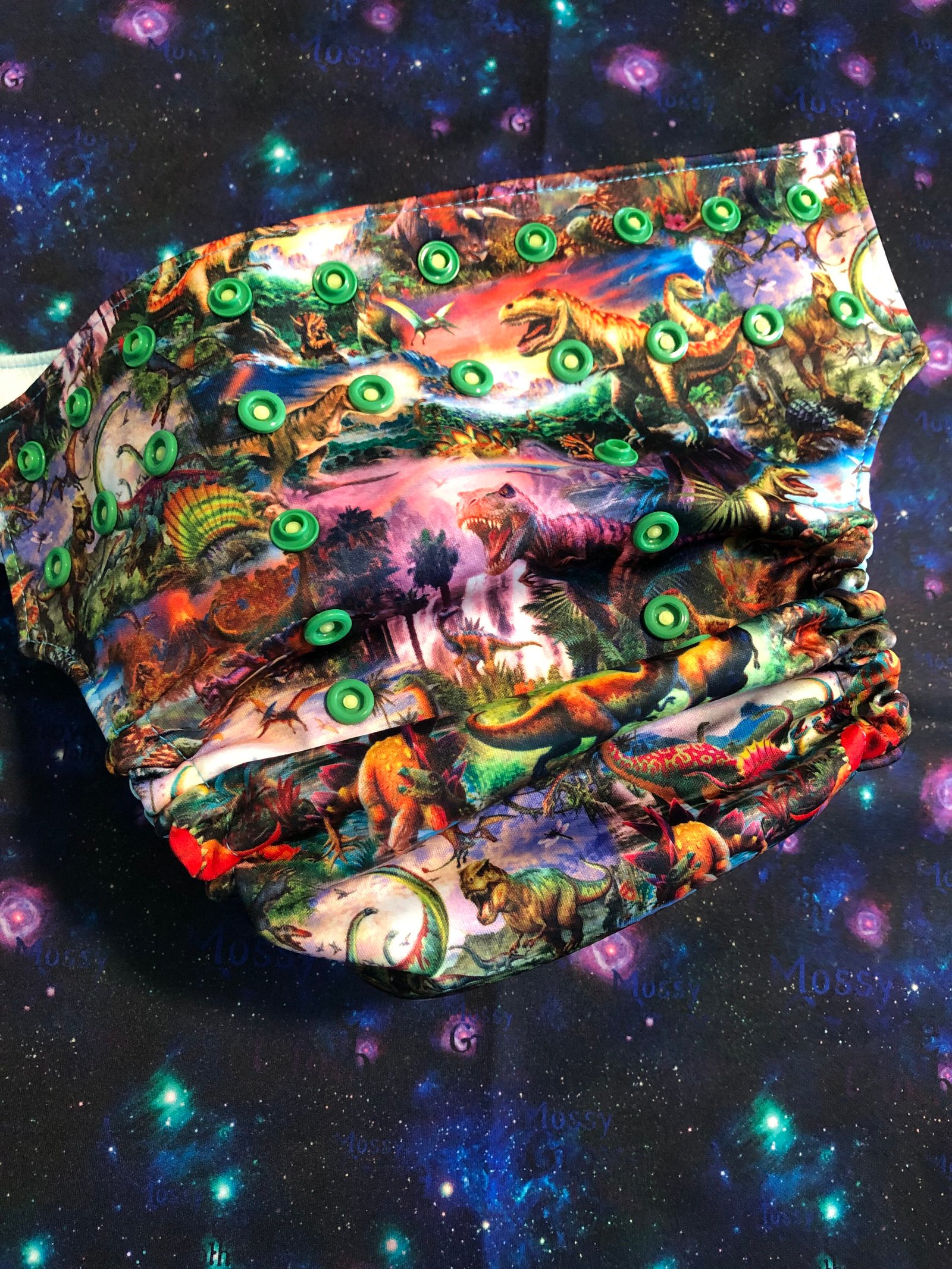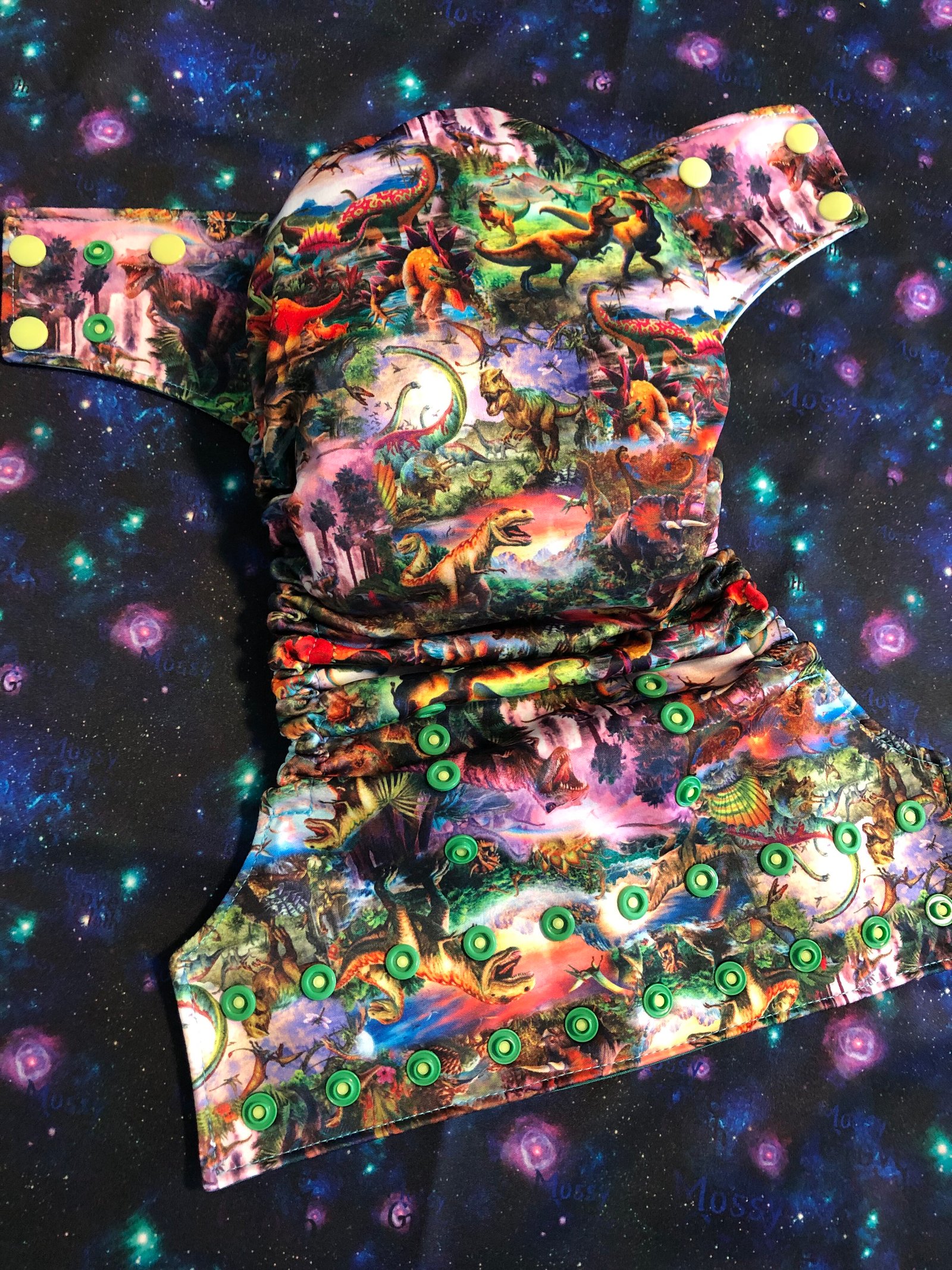 -Poly Knit Print Pockets have an outer of high quality poly knit that will not fade, pill, wick, or run. This layer is is backed by a full layer of pul. Then there is another layer of pul and a layer of wicking jersey for the pocket with a PUL belly panel. Pockets have a wide front opening and “clean” interior (hidden snaps/seams/elastic).