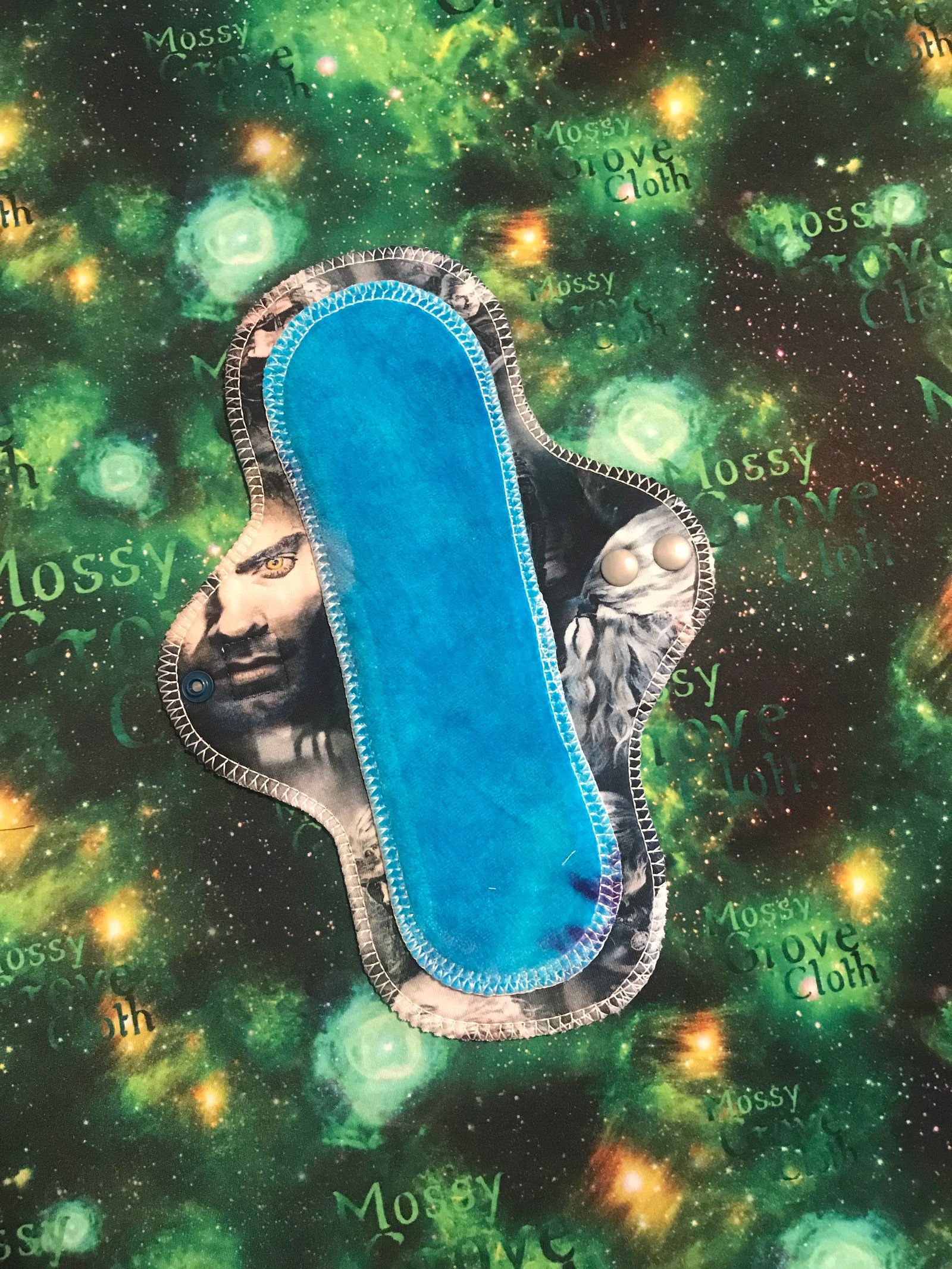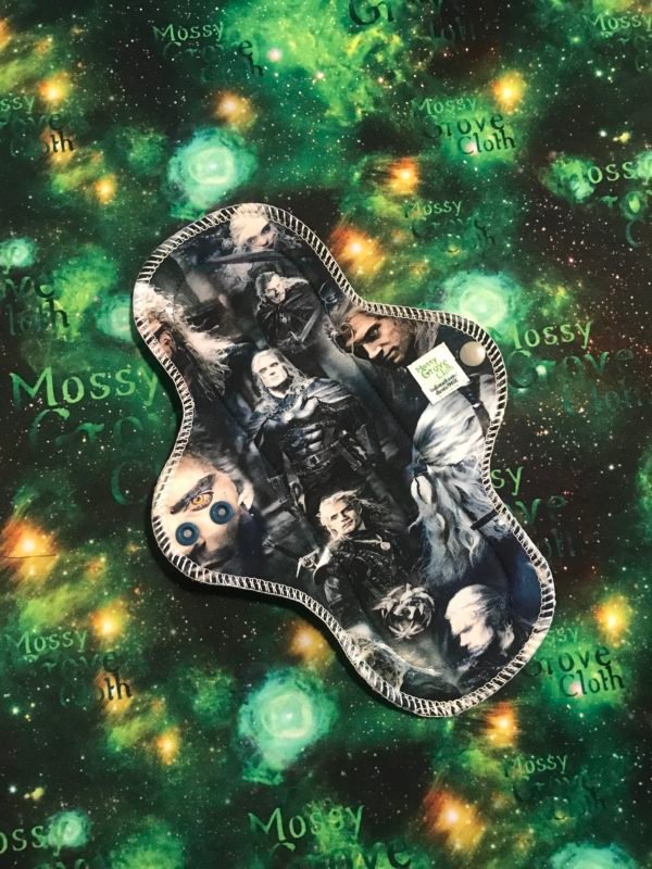 Reusable Pad- Outer layer- Poly Knit or cotton spandex, then a hidden layer of windpro fleece, and an inner layer of bamboo velour or cotton spandex. Then there is an exterior core made of multiple layers of heavy bamboo fleece and bamboo velour or cotton spandex as a topper.