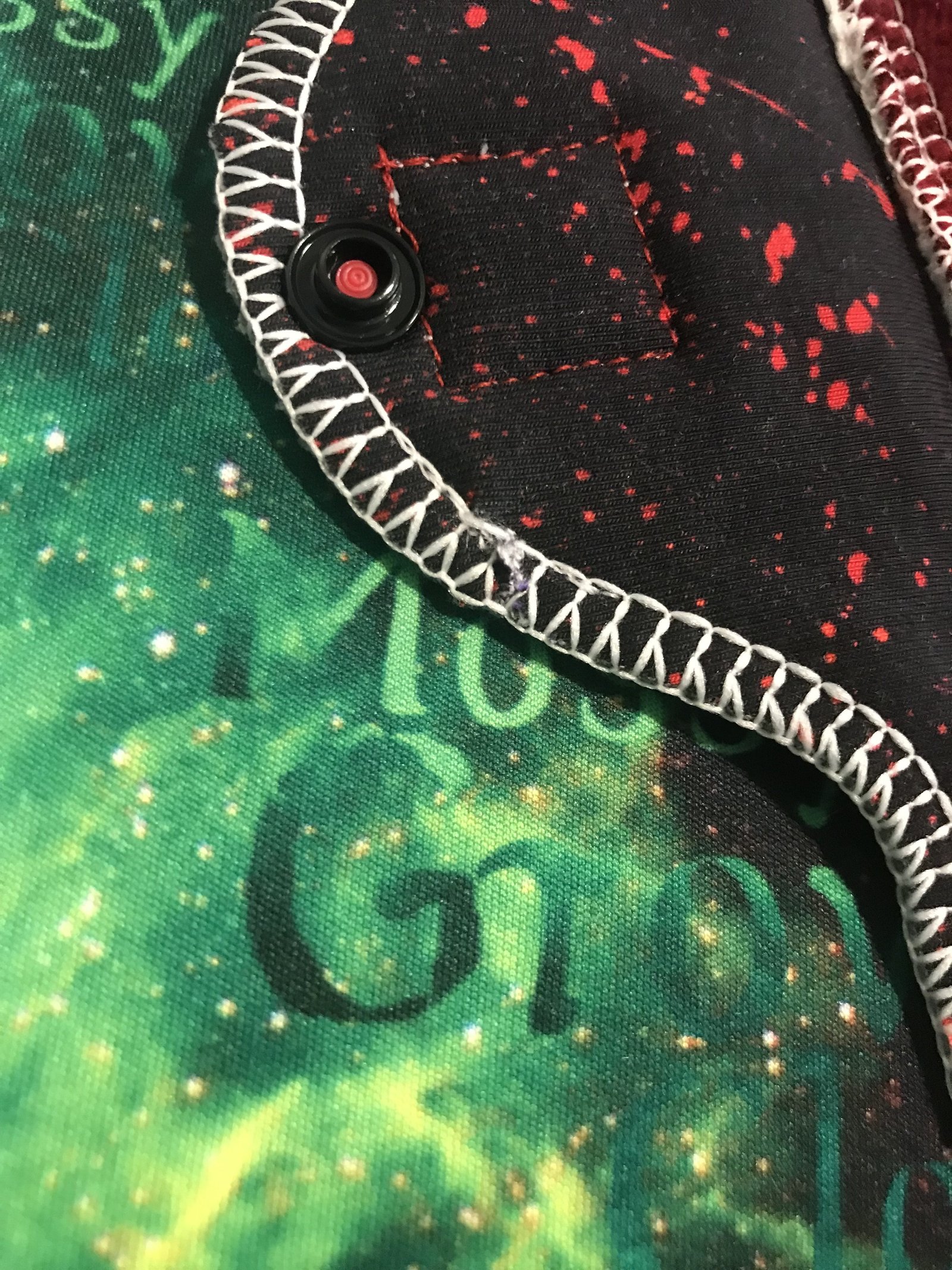 Reusable Pad- Outer layer- Poly Knit or cotton spandex, then a hidden layer of windpro fleece, and an inner layer of bamboo velour or cotton spandex. Then there is an exterior core made of multiple layers of heavy bamboo fleece and bamboo velour or cotton spandex as a topper.